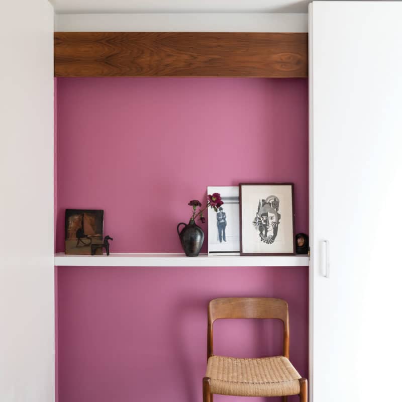 La peinture mate absorbe la lumière, ce qui crée un effet enveloppant, presque feutré. C’est le rendu “cocooning” par excellence, parfait pour délimiter subtilement un espace. Peindre un pan de mur en mat peut suffire à transformer l’ambiance. En revanche, cette finition pardonne peu : la moindre bosse, la plus petite rayure ressortent rapidement.